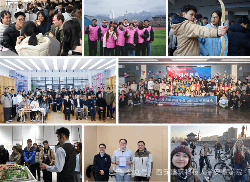 交流期间,安德学子以多元角色深度参与,在实践中锤炼本领。作为校园讲解员,学生代表陪同访学团参观绿色建筑全国重点实验室、校史馆等地,用流利英语介绍科研成果和办学特色;作为研讨参与者,他们在课堂上深入探讨专业知识,分享中澳就业现状和生涯规划;作为团队伙伴,他们在趣味运动会中默契配合、并肩竞技;作为文化传播者,他们在剪纸、射箭体验中细致演示指导,在晚会中展示汉服等传统文化元素,并陪同参观兵马俑、西安城墙等地,探寻古城魅力。多重角色的切换不仅提升了安德学子的语言表达能力、团队协作精神和国际视野,更使他们在向世界讲述中国故事的过程中,进一步深化了对家国文化的认同与情怀。访学尾声,学院举办“我眼中的西安”视频作品展示活动,访学团成员用中文分享此行感悟,执行院长熊仲明为其颁发证书。