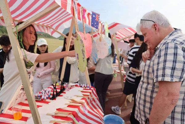 于草堂校区学府城4栋东侧草坪举办“山海相逢,融贯中澳”Social Gathering中澳文化交流活动。澳大利亚南澳大学15位外籍教师、成人论坛