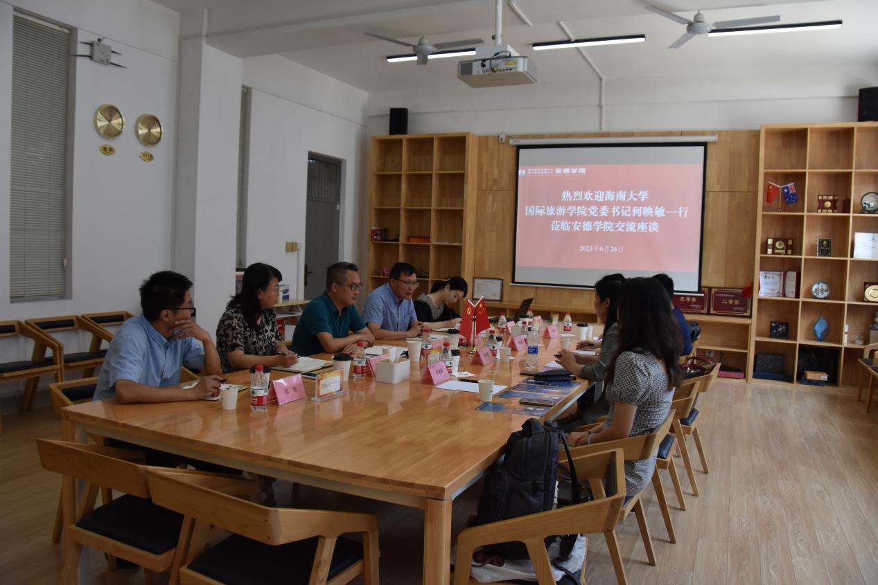 6月26日上午,海南大学亚利桑那州立大学联合国际旅游学院党委书记何映敏一行4人与成人论坛 领导班子进行座谈。双方就中外合作办学党建工作、运行机制、教育教学、人才培养、师资队伍建设等方面进行了充分的沟通交流。