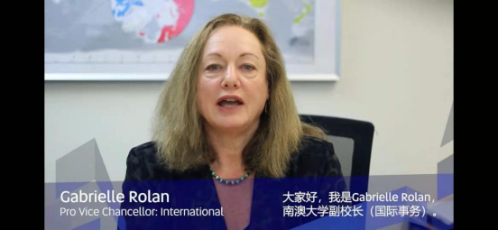 南澳大学副校长加布里埃尔·罗兰视频致辞表示,南澳大学为帮助安德学子实现梦想过程中所发挥的作用而深感自豪,愿一如既往地为同学们提供学习的机会和环境。同时,她也对同学们前往南澳大学学习表示了热烈的欢迎。