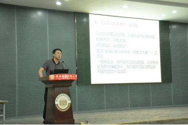 施昕强老师从干部的重要性、责任与担当是青年干部的使命两个方面为同学进行了全面的诠释,引用毛泽东同志“世界是你们的,也是我们的,但是归根结底是你们的。”鼓励同学们勇于担当奉献。