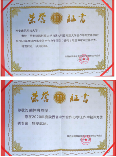 执行院长熊仲明荣获“2020年度陕西省中外合作办学优秀专家”荣誉称号。