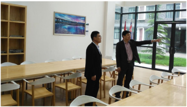 随后,刘言正书记带领王建军处长参观了成人论坛 教室、图书馆、开放空间及草堂校区。