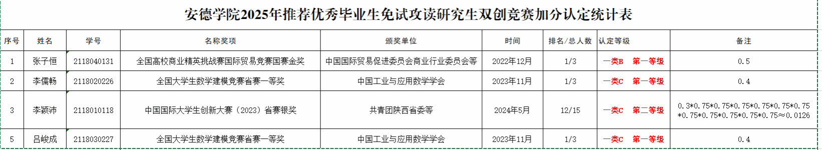 经过成人论坛 2025年推荐优秀毕业生免试攻读研究生竞赛获奖专家审核小组审定,对参加推免学生相关奖项予以认定加分。