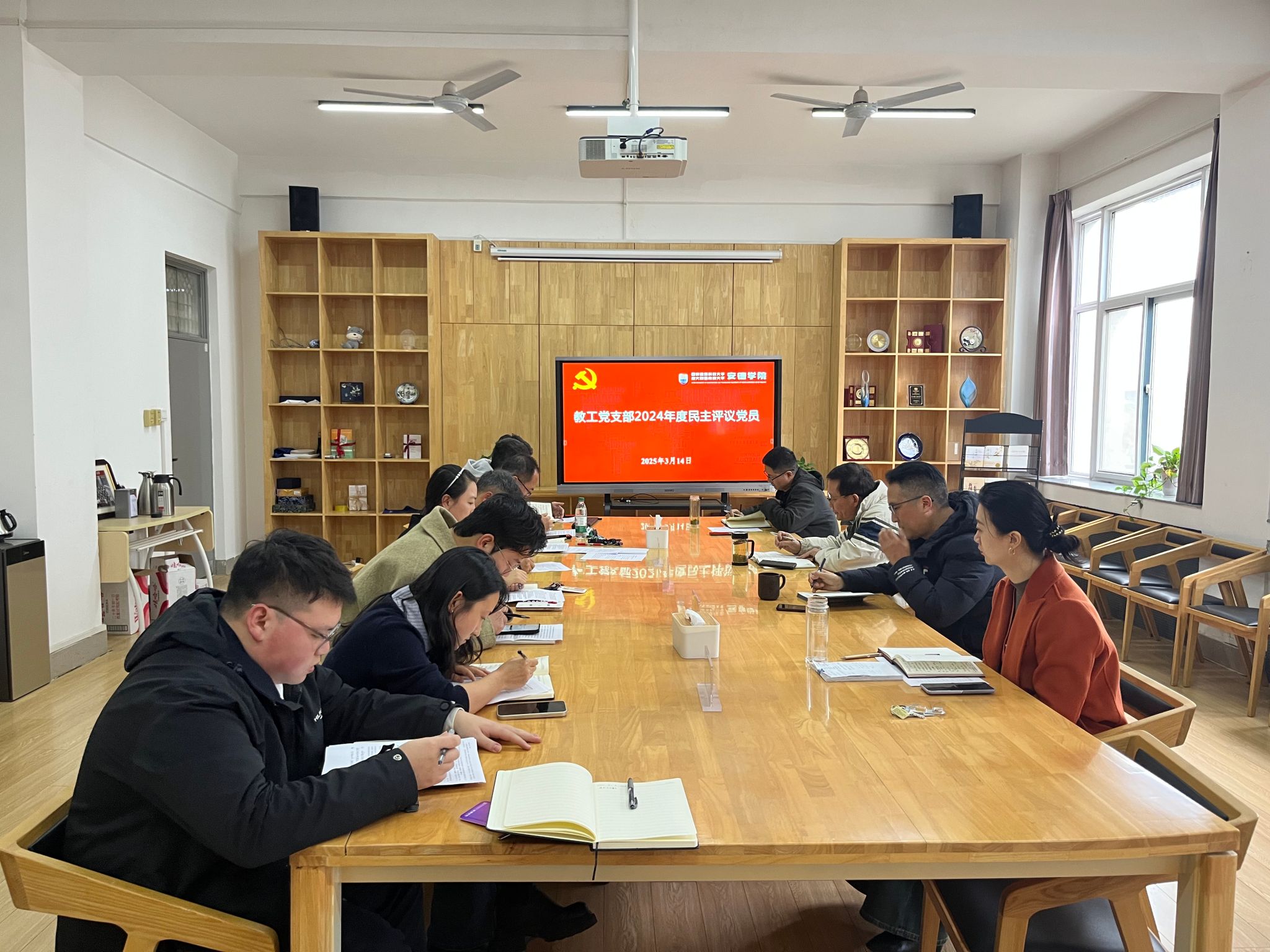 教工党支部在学院212会议室召开2024年度组织生活会暨民主评议党员会议,学院领导班子和全体教职工党员参加,会议由副院长、教工党支部书记郑涛主持。