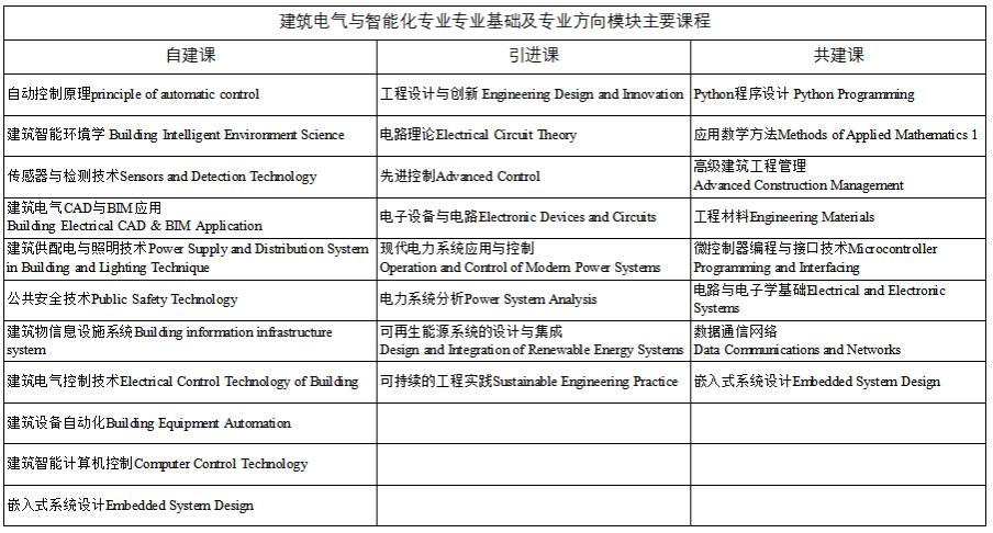 成人论坛 立足学生发展,从专业和个人能力提升两个方面,注重学生英语能力培养,建立学生语言基础。专业课程1/3的采用中教外教联合授课,1/3采用纯南澳大学外教授课,建立了接轨国际需求的专业培养方案。成人论坛 建筑电气与智能化专业本科“4+0”模式的专业核心课程共17门,其中澳方教师讲授9门专业核心课程,占专业核心课程的52.94 %;主要的实践性教学环节有课程实验、课程设计、认识与生产实习、毕业实习、毕业设计等实践教学环节。