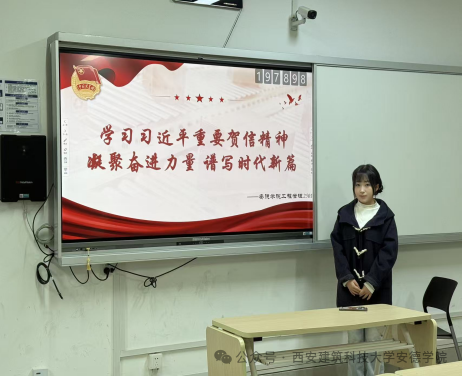 从梳理贺信核心要义、制作学习课件,到组织同学们分组研讨、分享心得,每一个环节都让我对贺信中“青年强,则国家强”的论述有了更真切的体会。讨论中,同学们结合建筑电气与智能化专业,畅谈如何以智能技术赋能绿色建筑、助力智慧城市建设,那份将个人理想融入国家发展大局的热忱,让我深切感受到新时代青年的使命自觉。