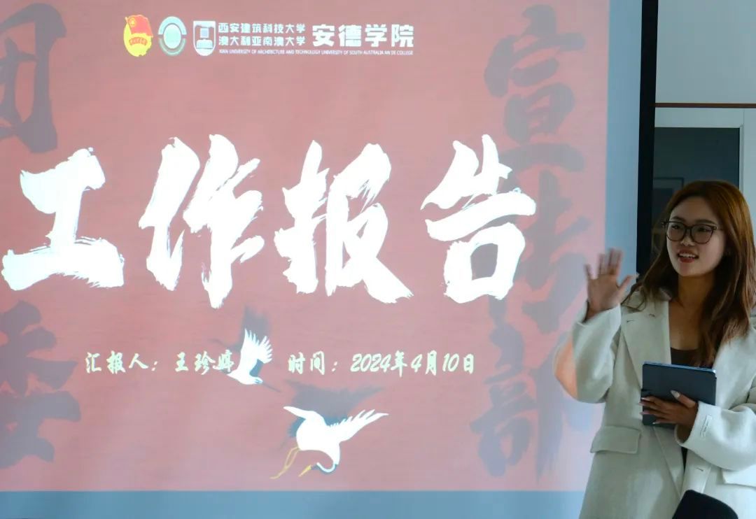 座谈会第一项,团委宣传部部长王珍婷从工作概括、日常工作、重点工作、反思展望四个板块,对上一学年的工作进行详细汇报,并就现有问题提出整改措施与发展方向。
