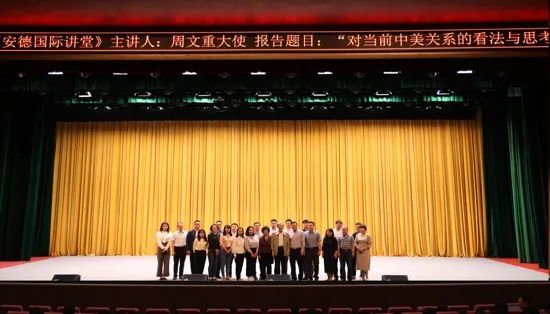 周文重大使以广博的知识、丰富的见闻和敏锐的判断,全面介绍了当前国际形势,准确分析了当今中美关系,深刻阐述了我国外交战略,为在场师生上了一堂生动的国际形势教育课。此外,他列举了相关外交实例,使大家感受到中国外交的独特智慧。