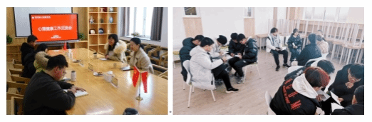 “安全意识教育守底线”。学院高度重视学生身心健康,坚持底线思维,严格树立预防为主,教育为先的工作理念,坚持关口前移,重心下沉的工作原则,做到面向全体、区分层次、抓住重点、不留死角,提高心理育人实效。学院通过“舍长—班委—班主任、辅导员联动”“家校联动”“党政联动”三大联动,畅通信息渠道,深入宿舍加强排查力度。同时,开展学生骨干培训,强化日常安全教育,筑牢安全稳定第一道防线;开展心理健康专题活动和主题班会,引导学生以积极向上的心理状态度过大学生活;定期对学生进行心理状态评估和谈心谈话,做好持续跟踪和建档记录,针对心理问题学生做到“一生一策一台账”;完善五级工作网络体系,夯实心理素质拓展与咨询中心、学院心理辅导站、辅导员、班级心理委员、宿舍心理信息员五级工作网络体系,年级心理委员、宿舍心理信息员参加“心理健康教育学生骨干”系列培训,提升全员心理育人水平。